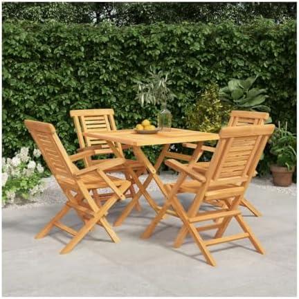 This patio dining set is designed with solid teak wood that is not only aesthetically pleasing but also durable. The armrest height of 26.2 inches ensures comfort while dining, and the 33.5″ x 33.5″ tabletop offers ample space for meals and decorative items. One of its standout features is the foldable function, enabling easy storage when not in use. The sturdy tabletop can confidently hold a variety of items, from dishes to floral arrangements, making it adaptable for different occasions.