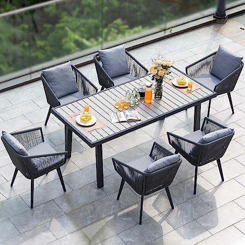 Designed for relaxation, the high back and spacious seating of these chairs contribute to a comfortable dining experience, elevating the enjoyment of outdoor meals. The Textilene fabric provides ventilation and a quick-dry feature, perfect for summer days. However, it’s essential to consider the weight capacity, as while each chair supports up to 300 lbs, the larger table creates the potential for uneven weight distribution when fully extended. this set serves as an excellent choice for anyone looking to enhance their outdoor dining area with style and functionality.