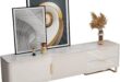 What stands out is the clever build that also protects against moisture damage, making it suitable for various living spaces, from living rooms to entryways. The spacious four-cabinet layout is supported by sturdy structures, able to hold not just a 75″ TV but also a range of audiovisual equipment safely.Features like cable management holes are practical additions that help keep our media setup tidy and organized. Below is a fast summary of the material and construction highlights we noticed: