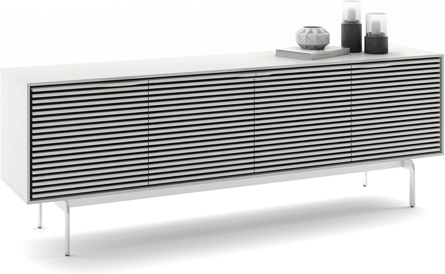 our first impression of the satin white finish is its sleek and modern aesthetic, which effortlessly blends with a variety of interior styles. The surface is smooth to the touch and resists fingerprints, maintaining a pristine look even after extended use. Beyond the visual appeal, the craftsmanship is evident in the solid construction and attention to detail, especially in how the remote-friendly louvered doors are designed. These doors not only conceal media components but cleverly allow infrared signals and sound to pass through, ensuring function does not compromise form.
