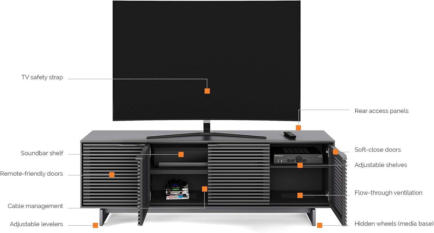 Finding furniture that seamlessly merges style with practicality can be a challenge, but this TV stand truly excels at striking that balance. Its satin white finish adds a crisp, modern touch that brightens our living room without overpowering other décor elements. The clean lines and remote-friendly louvered doors not only conceal clutter but also allow our soundbar and center speakers to deliver crystal-clear audio without obstruction. Adjustable shelves offer flexibility, easily accommodating various AV components and even decorative items, which helps maintain a tidy yet visually appealing setup.