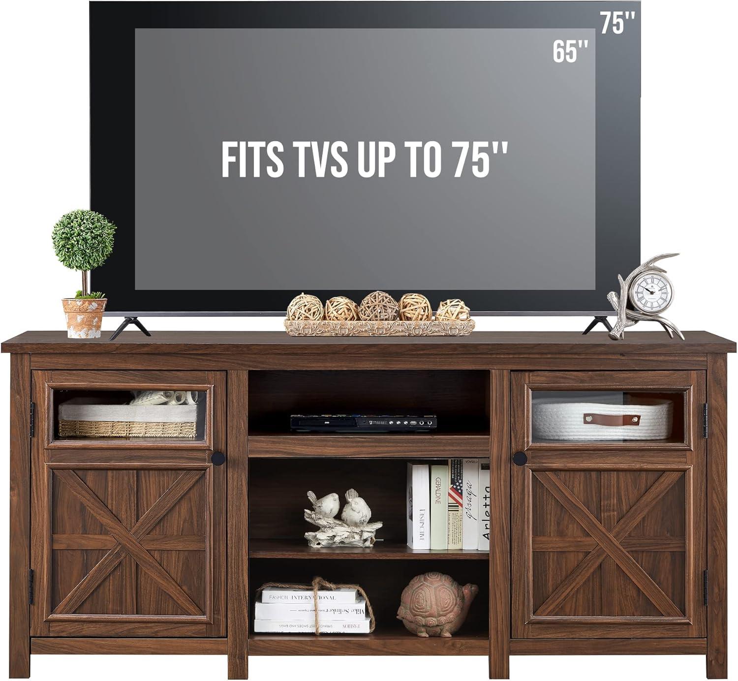 After spending considerable time with this farmhouse-style entertainment center, we appreciate how it masterfully balances rustic charm and modern functionality.The solid engineered wood construction provides a sturdy and stable base for large TVs up to 75 inches, reassuring us of its durability and reliability. The barn doors add an authentic farmhouse flair while the transparent glass trim injects a subtle contemporary touch-making it versatile enough to complement a variety of living room aesthetics. Assembly was straightforward thanks to the detailed manual and thoughtful packaging, but we advise ensuring proper installation and stability to avoid any potential tip-over hazards. Also, take care around the barn doors to prevent finger pinching, which is something to keep in mind with families.