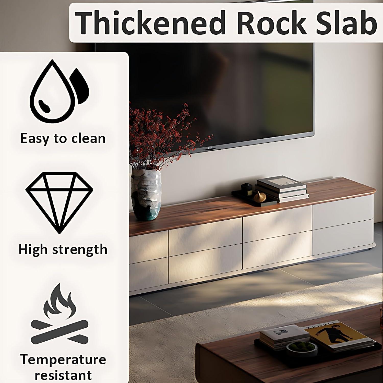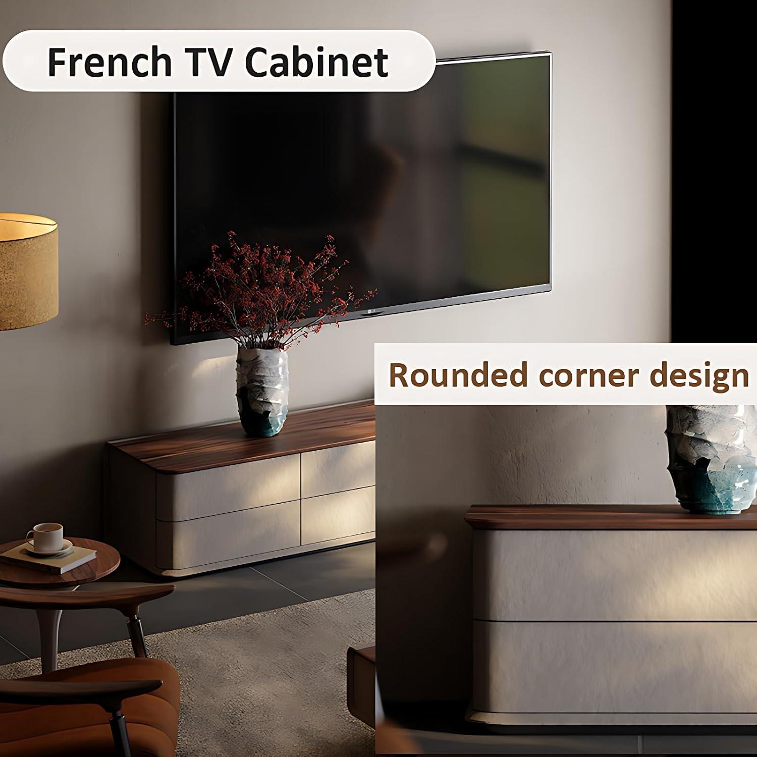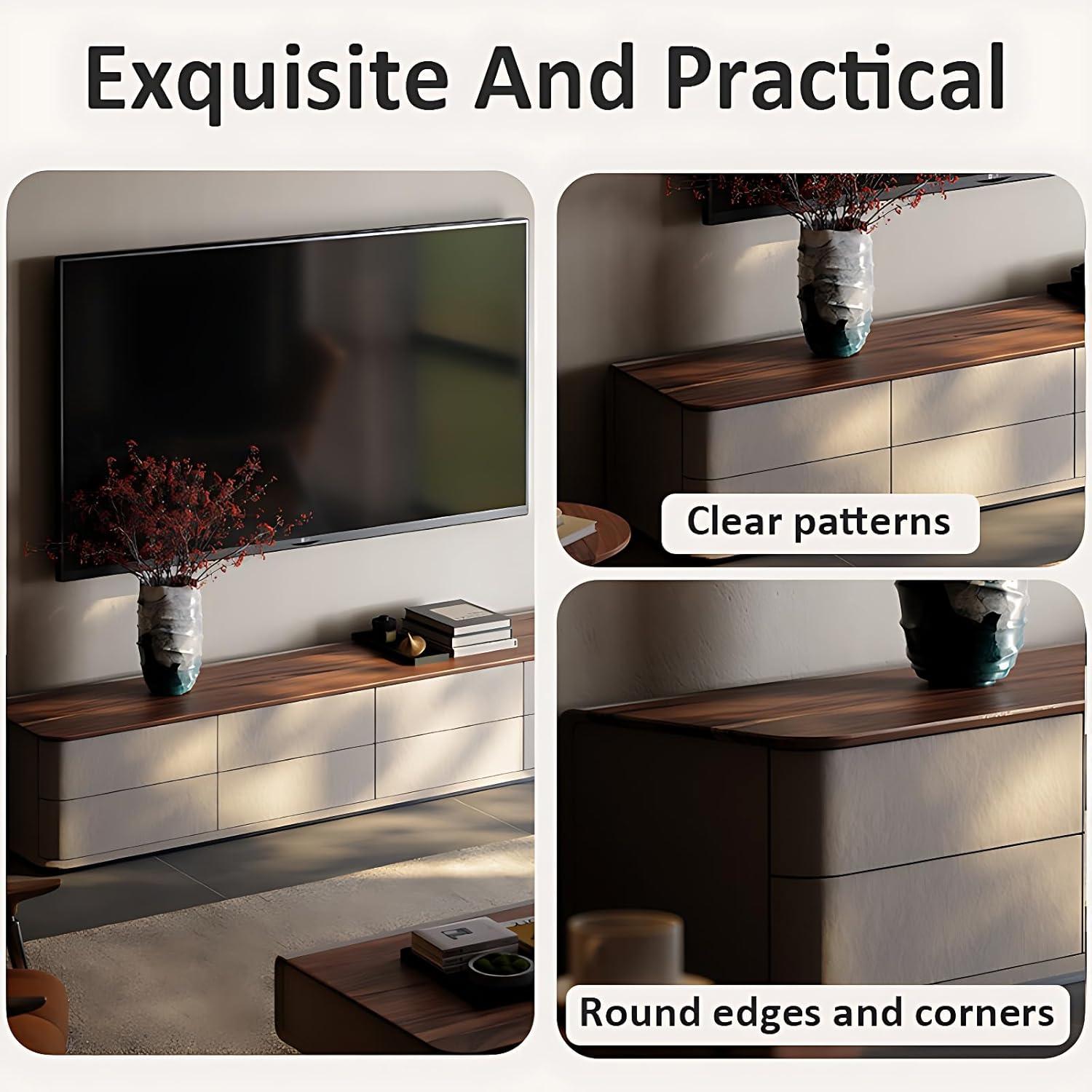 Crafted from solid wood, this entertainment center exudes a natural elegance with its delicate wood grains and smooth finish. the combination of straight lines with rounded corners creates a visually appealing design that balances softness with structure, giving any living room a sophisticated yet inviting atmosphere.The surface is easy to maintain-dust and stains wipe away effortlessly-ensuring the unit always looks pristine without needing extensive upkeep.beyond aesthetics, the robust wood panel offers exceptional durability, comfortably supporting even the largest TVs up to 100 inches along with various heavy accessories.