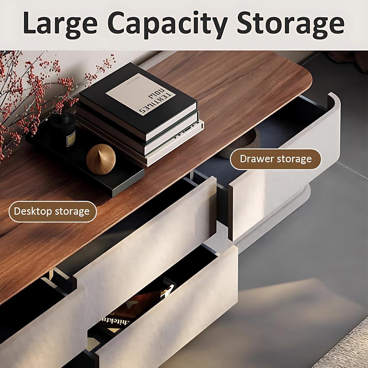 Beyond functionality, the smooth solid wood surface not only adds warmth but is remarkably easy to clean. Dust and stains wipe away effortlessly, preserving an inviting, polished appearance without demanding extra effort. The well-engineered silent guide rails on each drawer ensure smooth, noiseless operation that respects the tranquility of our space, even in the quietest moments.Combining robust strength and elegant design with smart storage features, this piece truly elevates the living room experience.