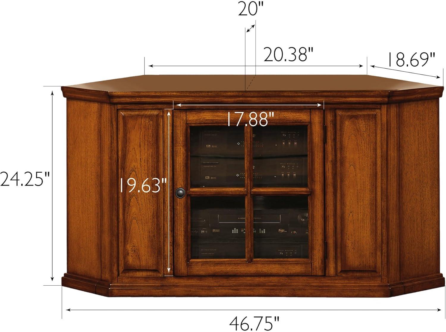 Designed to maximize your living space, this corner TV stand is an excellent choice for accommodating tvs up to 50 inches while fitting perfectly into any corner. Its compact dimensions of 46.75″ L x 20″ W x 25″ H help reclaim valuable floor space,making it ideal for smaller rooms or apartments. Crafted from solid wood and quality wood veneers, the stand combines durability and elegant design. The burnished medium oak finish with subtle distressing adds warmth and timeless character to any decor, while the sturdy structure supports up to 240 lbs., providing a reliable base for your entertainment system.