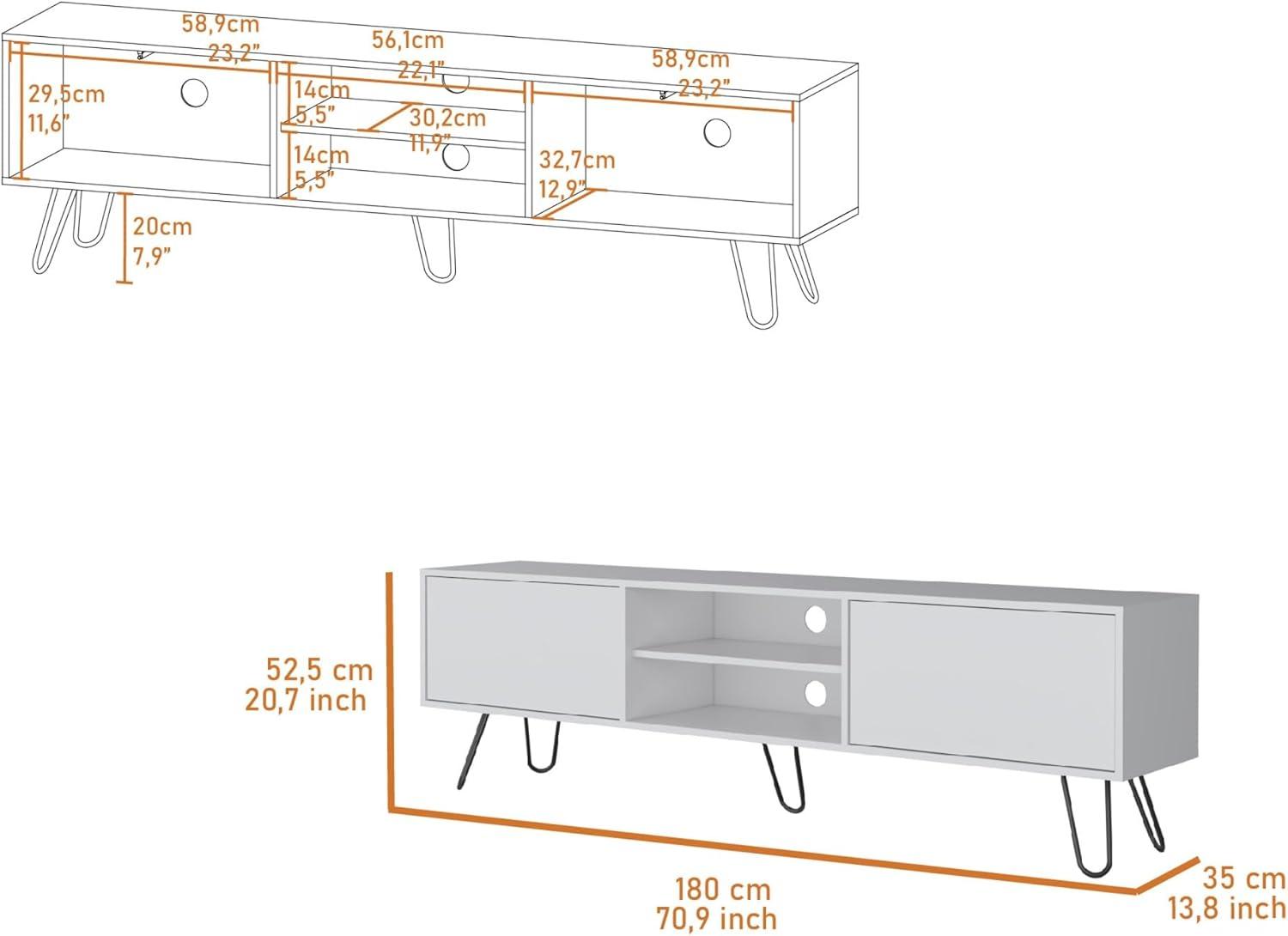 | Dimensions | 70.9″ W × 13.8″ D × 20.7″ H | Accommodates large TVs & storage needs |