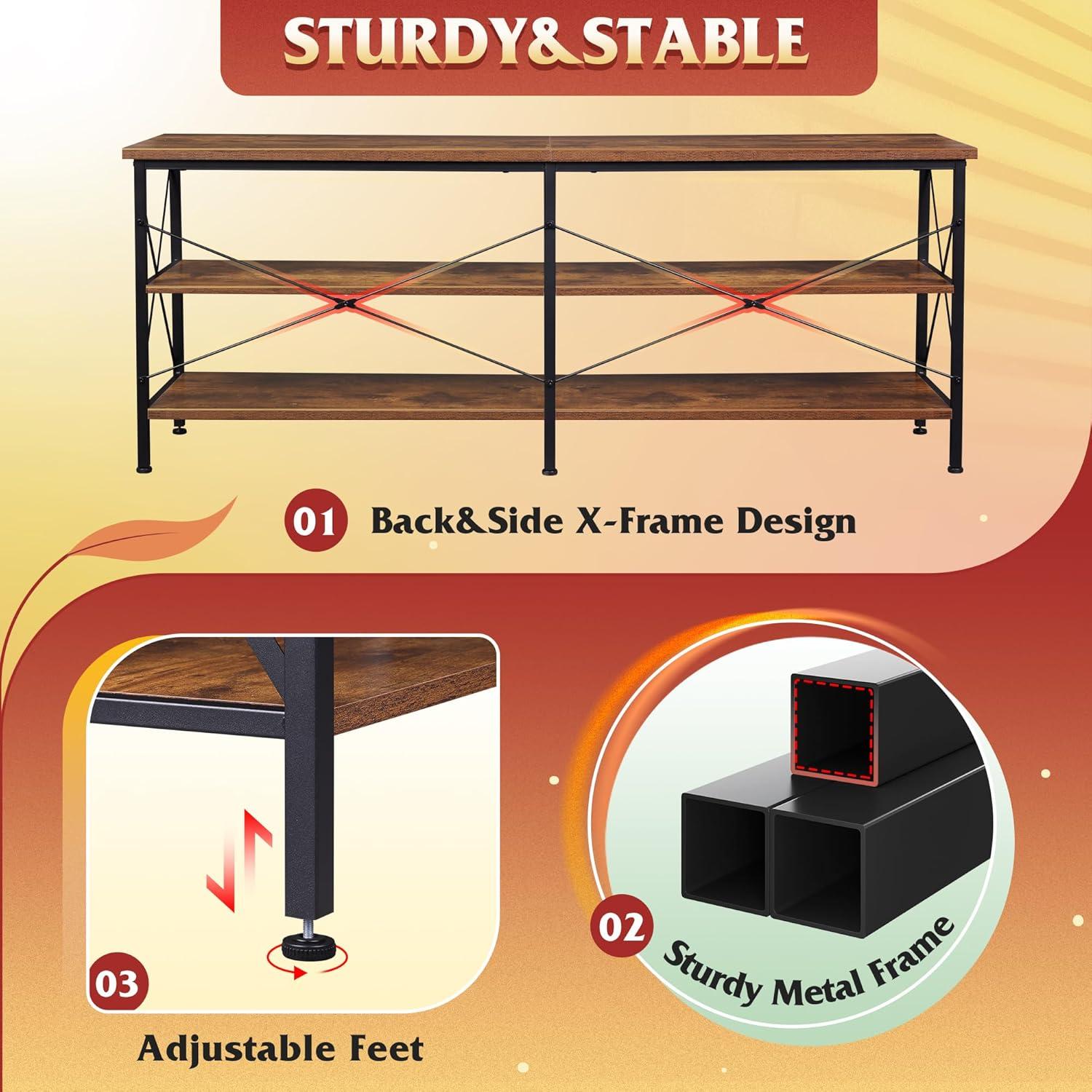 the WLIVE Rustic TV Stand offers a perfect balance of style, durability, and functionality. With its spacious 3-tier storage shelves and sturdy industrial design,it fits seamlessly into any room while keeping your entertainment essentials organized. The easy assembly and solid construction make it a reliable choice for supporting TVs up to 70 inches without compromising on aesthetic appeal. Whether it’s for your living room or bedroom, this TV console stands out as a versatile and practical addition to your home.
