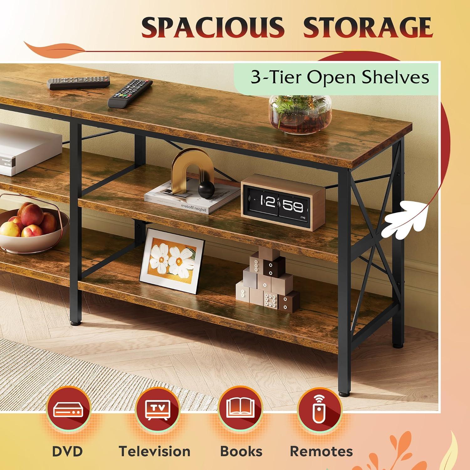 the WLIVE Rustic TV Stand offers a perfect balance of style, durability, and functionality. With its spacious 3-tier storage shelves and sturdy industrial design,it fits seamlessly into any room while keeping your entertainment essentials organized. The easy assembly and solid construction make it a reliable choice for supporting TVs up to 70 inches without compromising on aesthetic appeal. Whether it’s for your living room or bedroom, this TV console stands out as a versatile and practical addition to your home.