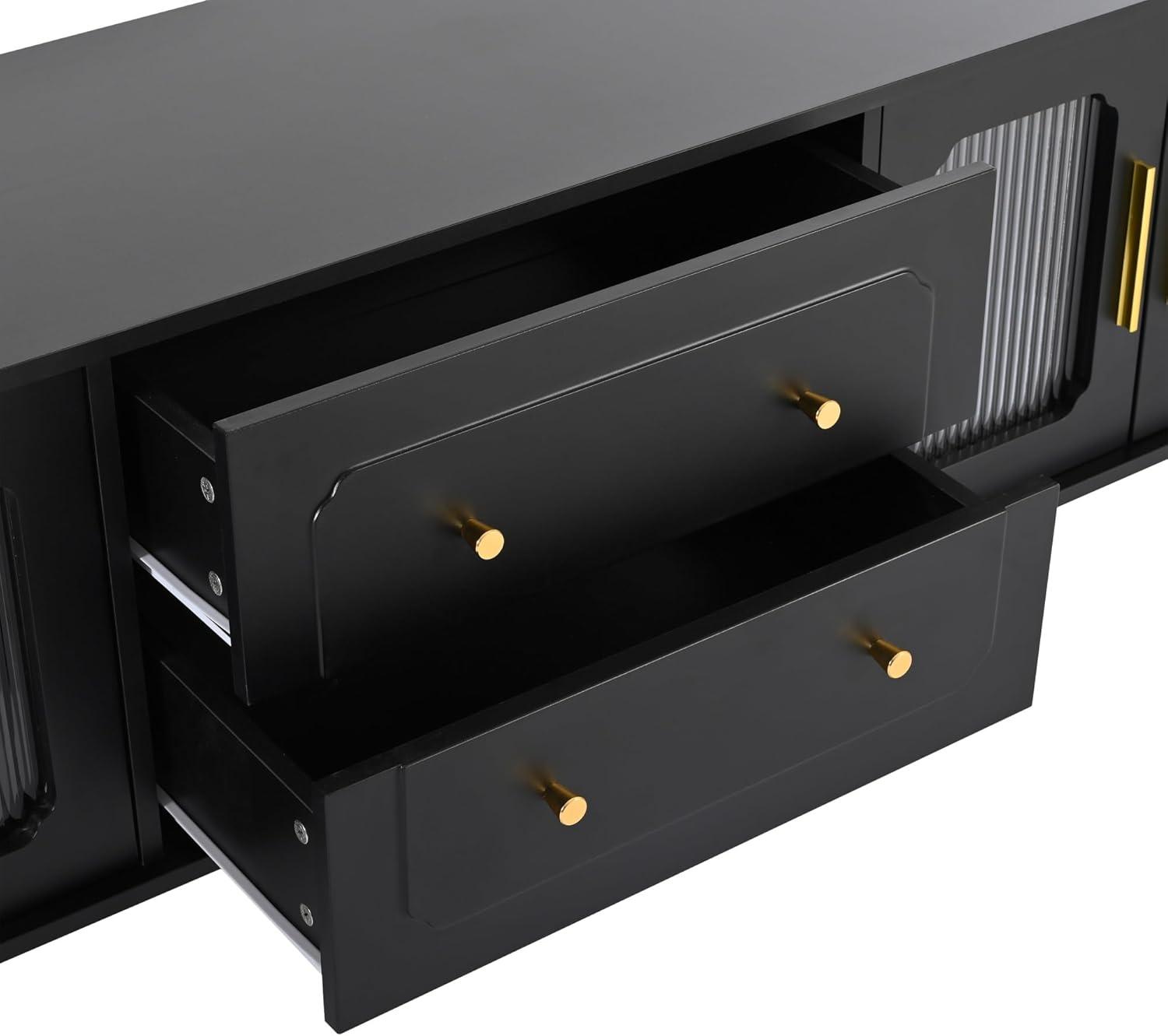 Beyond its striking aesthetic, the black finish also highlights several thoughtful design features that enhance functionality without sacrificing style. For example, the sleek wave-textured cabinet doors and gold-tone hardware stand out crisply, adding layers of visual interest that keep the console from feeling flat or heavy. Simultaneously occurring, the finish’s durability helps maintain a pristine appearance despite daily use, ensuring the entertainment center remains the centerpiece of our living room for years to come.