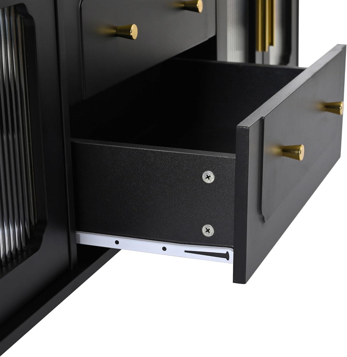 Beyond their beauty, the doors are highly functional, granting easy access to our stored items while keeping them beautifully concealed. The premium gold-tone handles complement the black finish perfectly, contributing a touch of luxury that works well with multiple interior styles.Plus, the sturdy particle board construction ensures that these fluted glass doors are not only a statement piece but also built for everyday durability. Here’s a quick glance at some key features that impressed us: