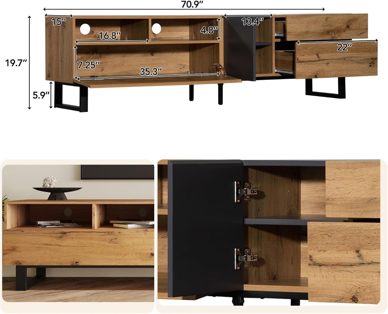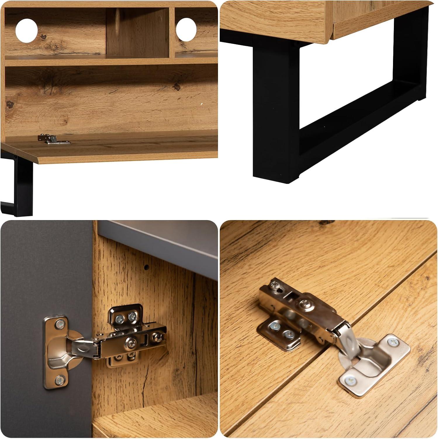 | Supports Up To 80″ TVs – Perfect for bigger screens, offering sturdy support and a perfect fit. | Drop-Down doors – Stylish and functional, though they need clearance in front to open fully. |