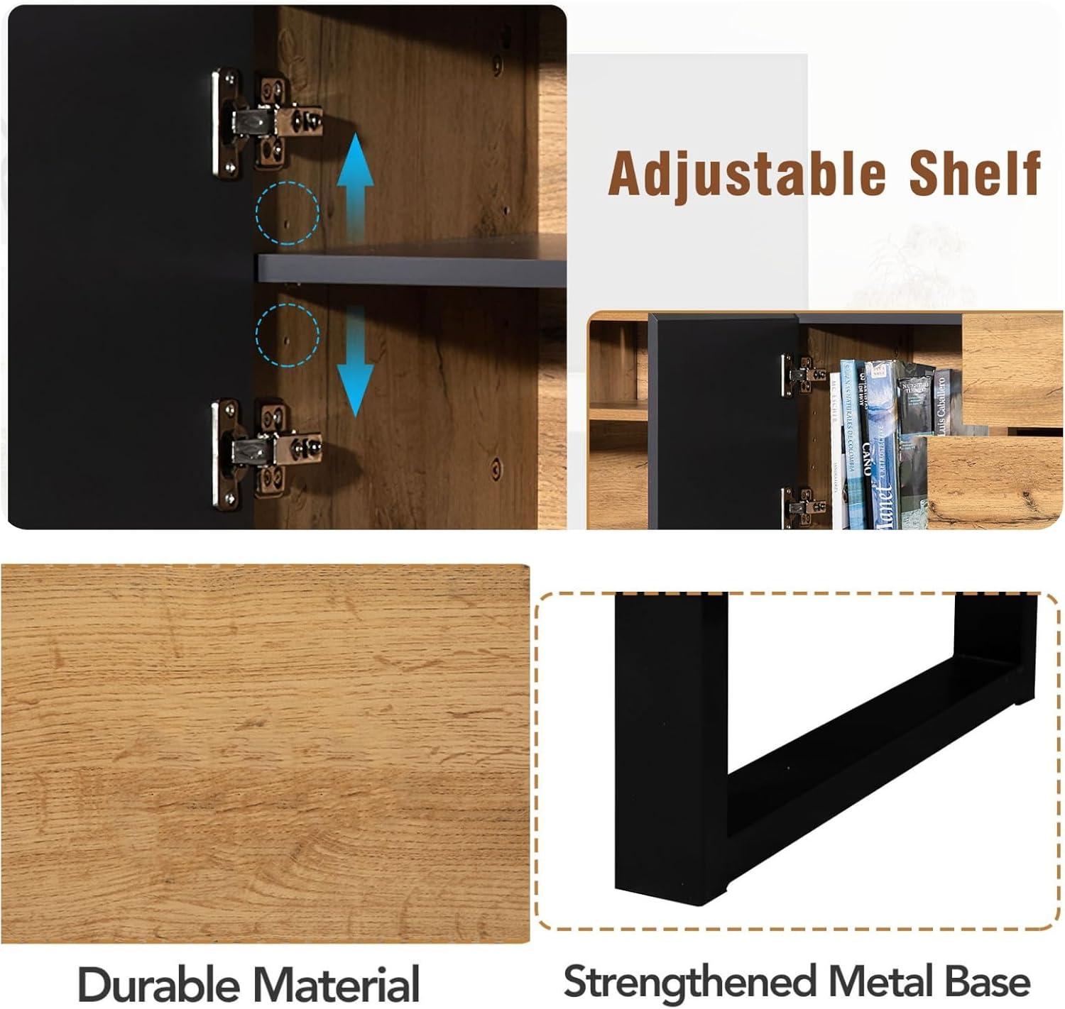 The cabinet supports TVs up to 80 inches with notable stability, ideal for both living rooms and home theaters. An adjustable interior shelf adds flexibility, allowing us to maximize storage space effectively. This versatility, combined with its simple yet elegant geometric construction, makes it a smart investment for anyone seeking a multi-purpose TV stand. Below is a quick summary of its standout features: