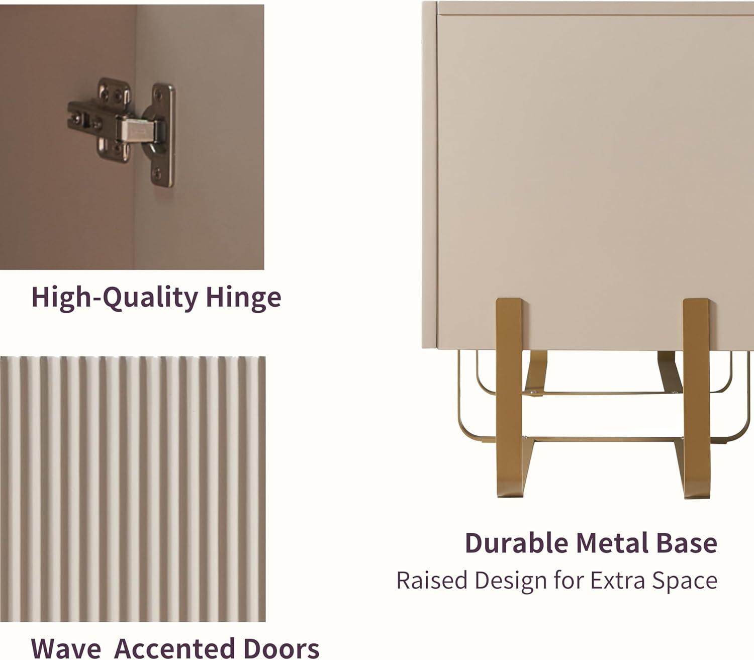 In our experience, this entertainment center strikes the perfect balance between style and functionality, making it an excellent addition to both family rooms and bedrooms.Its sleek, handleless design and subtle curves bring a sophisticated touch that effortlessly complements modern décor, while the unique metal legs add a striking yet sturdy foundation. The three spacious storage cabinets provide ample room for your media accessories, with smart cable management to keep everything organized and clutter-free-essential for busy households aiming for a clean look.