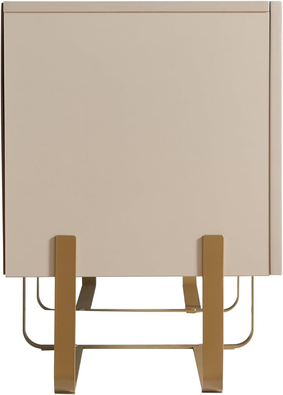 The taupe finish on this entertainment center effortlessly bridges the gap between cool and warm tones, creating a neutral palette that enhances a wide variety of living spaces. Whether placed in a minimalist urban apartment or a cozy family room, the subtle warmth of taupe adds an inviting yet sophisticated touch. Its smooth surface with gentle curves reflects light softly,avoiding stark contrasts and instead harmonizing with natural materials like wood and metal. The modern style is elevated by the cool metal legs, which contrast tastefully with the finish, making it a stunning centerpiece without overwhelming the room’s existing décor.