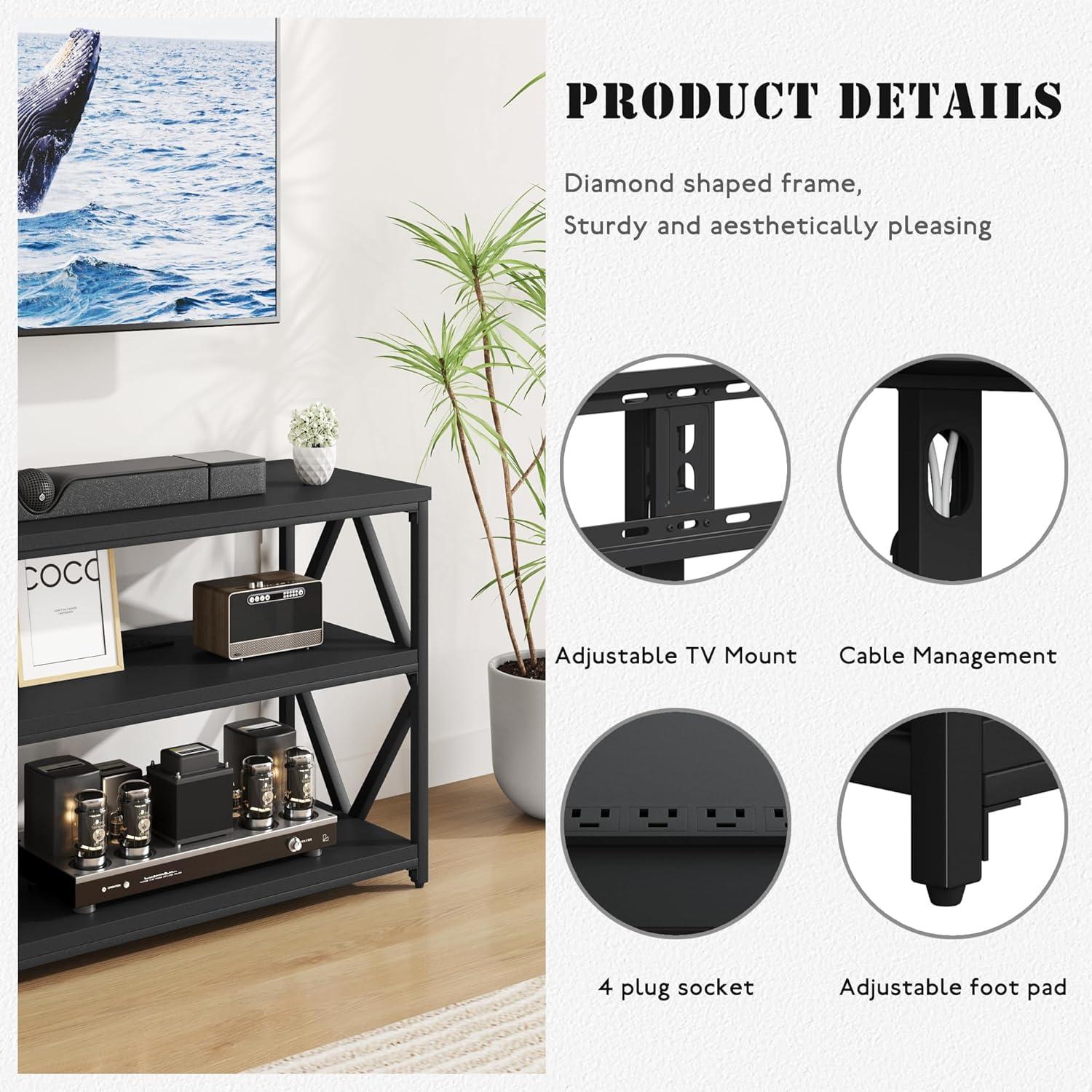 The unit impresses with its well-thought-out storage solution,featuring three spacious shelves designed to accommodate a variety of entertainment essentials.These shelves provide ample room for devices like gaming consoles, streaming boxes, and DVD players, while also allowing us to neatly organize remotes, accessories, and decorative items. Their open design ensures easy access and ventilation, which is essential for electronic components that generate heat.