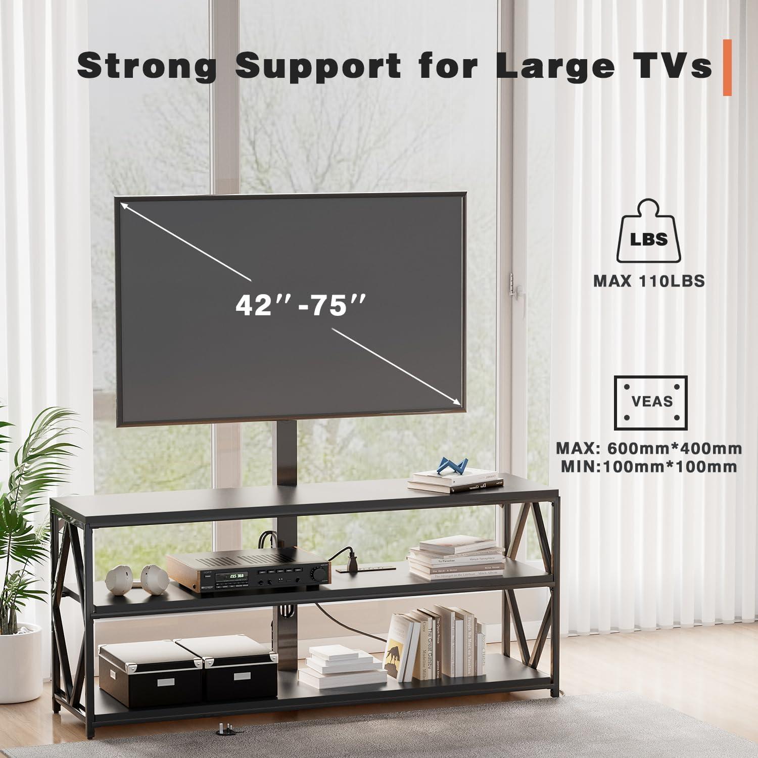 | Supports a wide TV size range (42″-75″), perfectly fits most living rooms | Bulky design could take up more floor space in compact rooms |