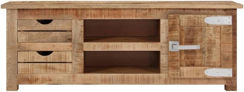 When you live with the Youuihom Rustic TV Stand Solid Mango Wood Brown Entertainment Center with Storage Drawers and Shelves for Living Room bedroom, the piece loosens its edges and settles in over time.In daily routines its shelves gather remotes, a leaning stack of books and the occasional cup, the drawers open and close with a familiar, habitlike cadence as the room is used. The surface picks up faint rings and scuffs that map regular household rhythms and change how touch and light meet the wood.It stays.